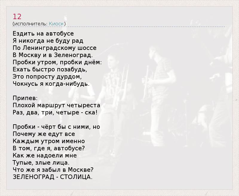 Это интересно:Зеленоградская ska/brass-pop/disco группа, образованная в 2003 году. В музыке больше ска чем панка, весёлые композиции и беззаботные тексты.Интервью на студии, где писался первый альбом "Не без чудес": http://www.radicalscope.ru/index.php?do=static&page=interviewkioskИнтервью по случаю авторской раздачи на torrents.ru - http://torrents.ru/forum/viewtopic.php?t=1325571ссылка... продолжение