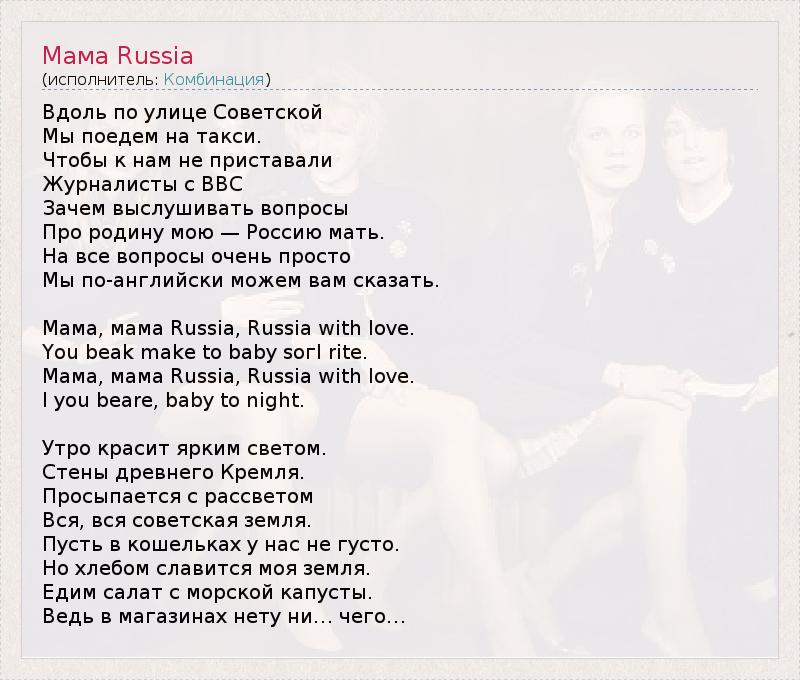 А как ты думаешь, о чем песня "Мама Russia" ?