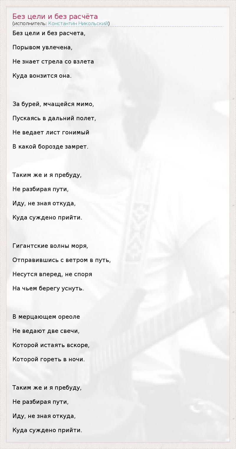 А как ты думаешь, о чем песня "Без цели и без расчёта" ?