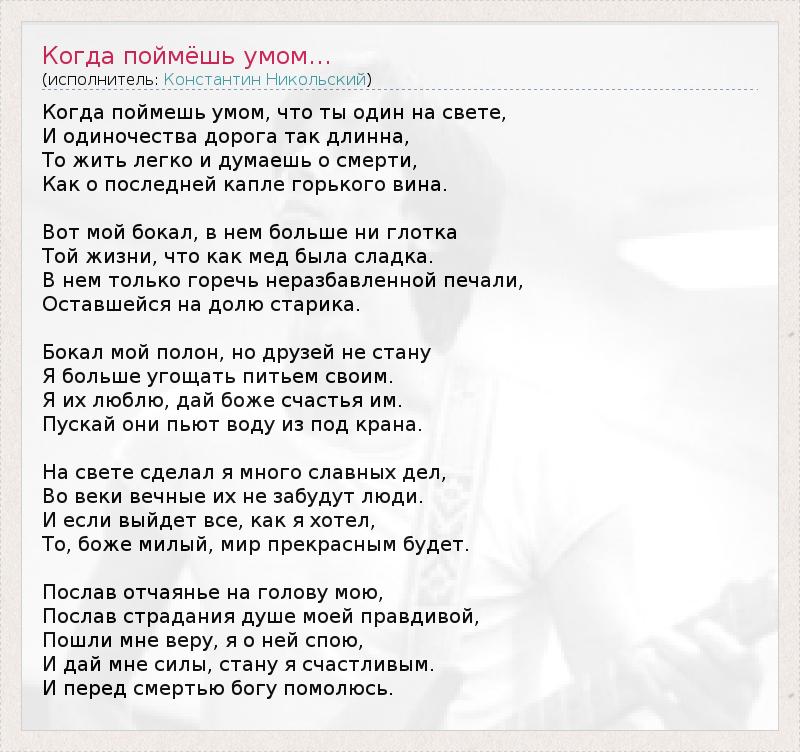 А как ты думаешь, о чем песня "Когда поймёшь умом..." ?