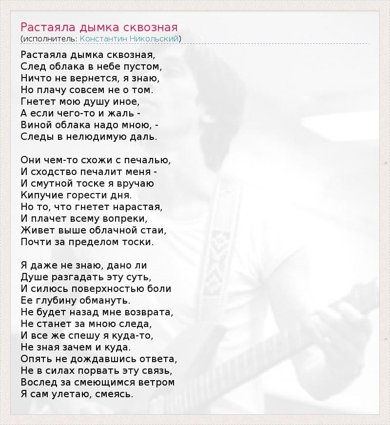 ГлавнаяИсполнителиКонстантин НикольскийРастаяла дымка сквозная