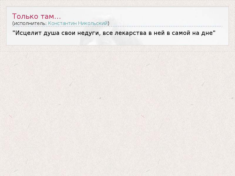 Это интересно:Константин Никольский родился 1 февраля 1951 года. В 16 лет он играл на гитаре в легендарной московской группе «Атланты» - одном из первых проектов Юрия Айзеншписа. «Атланты» пели на английском языке и были бешено популярны. В «Атлантах» Никольский начал сочинять песни. В 1974 году, после распада «Атлантов», Никольский присоединился к группе Стаса Намина... продолжение