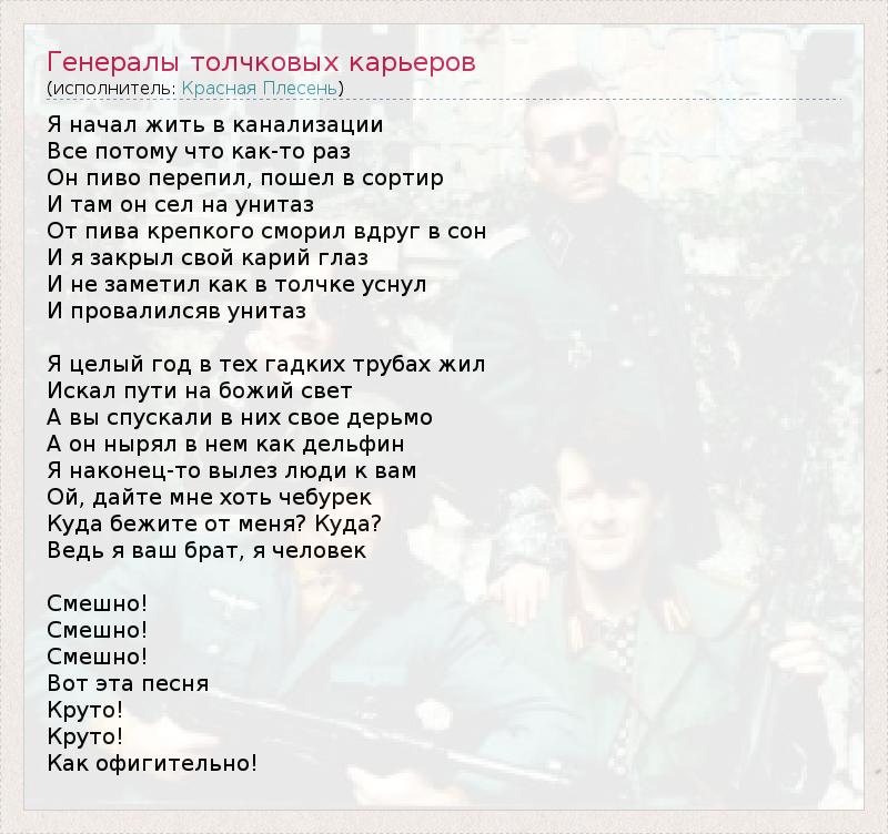 А как ты думаешь, о чем песня "Генералы толчковых карьеров" ?