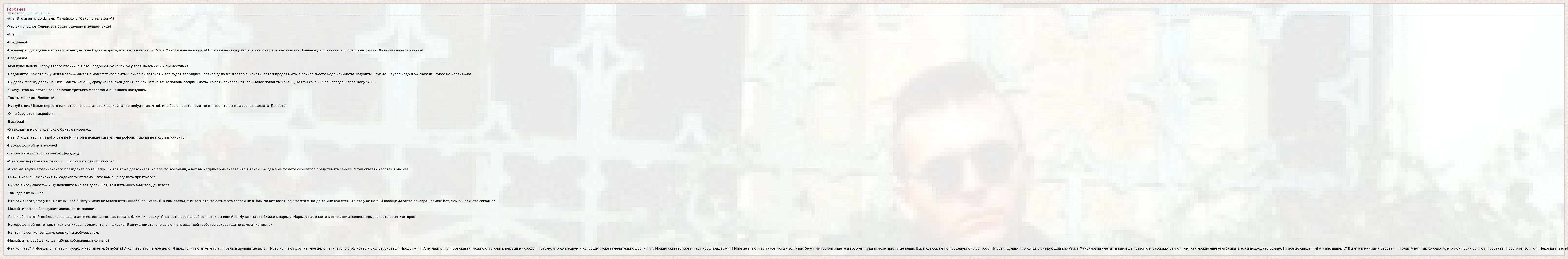 -Вы наверно догадались кто вам звонит, но я не буду говорить, что я это я звоню. И Раиса Максимовна не в курсе! Но я вам не скажу кто я, я инкогнито можно сказать! Главное дело начать, а посля продолжить! Давайте сначала начнём!
