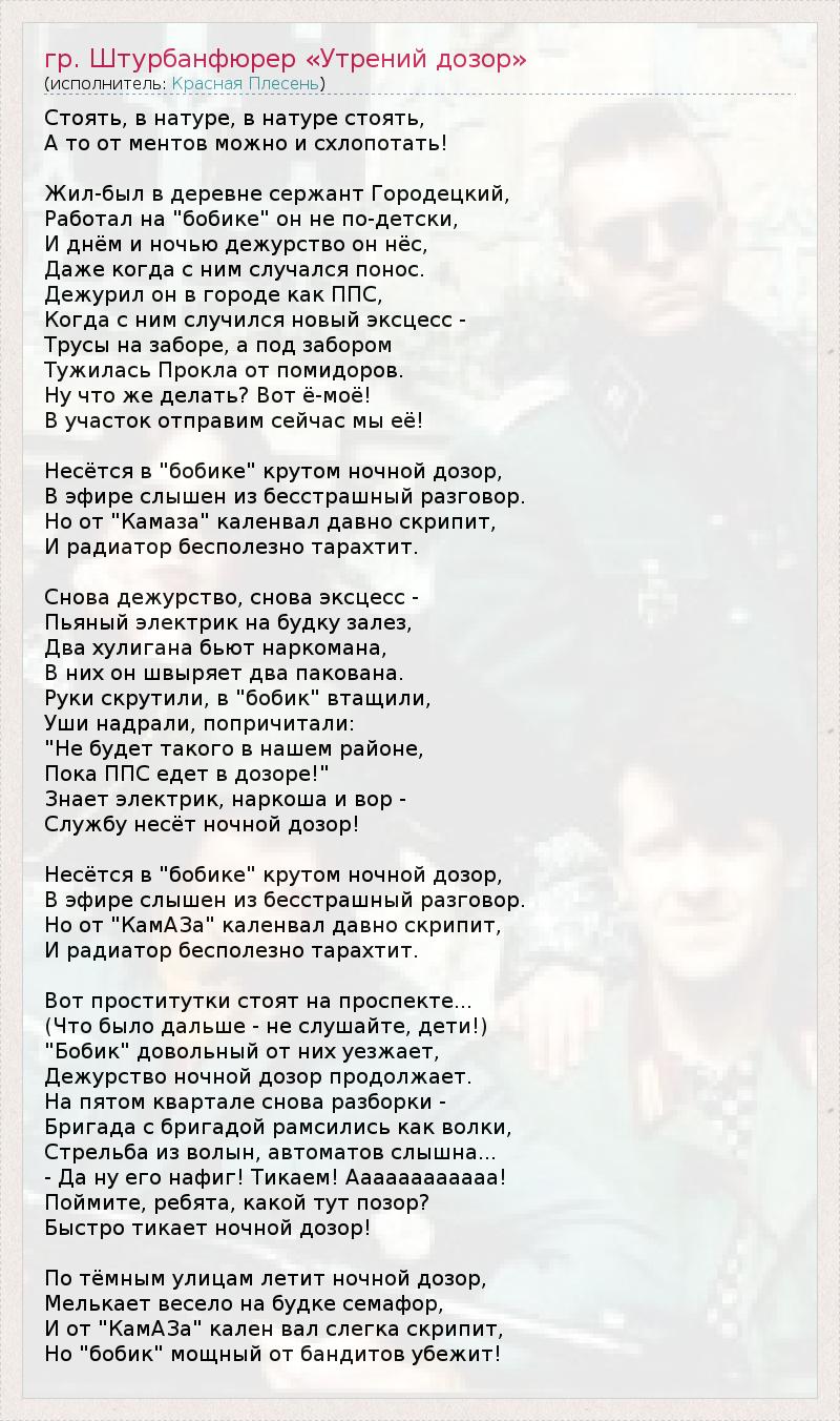ГлавнаяИсполнителиКрасная Плесеньгр. Штурбанфюрер «Утрений дозор»