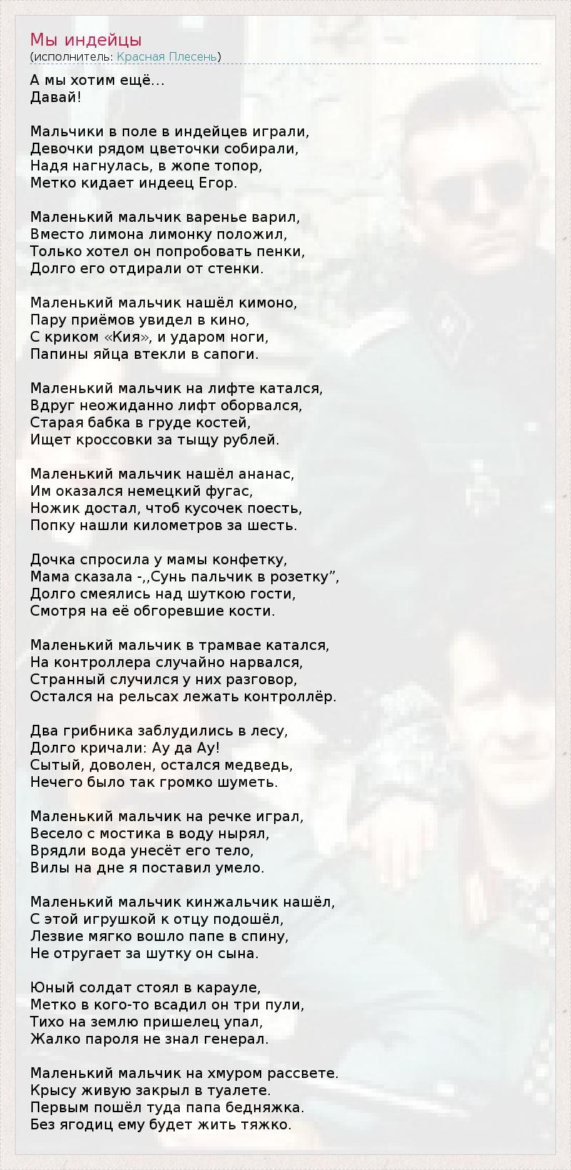 А как ты думаешь, о чем песня "Мы индейцы" ?