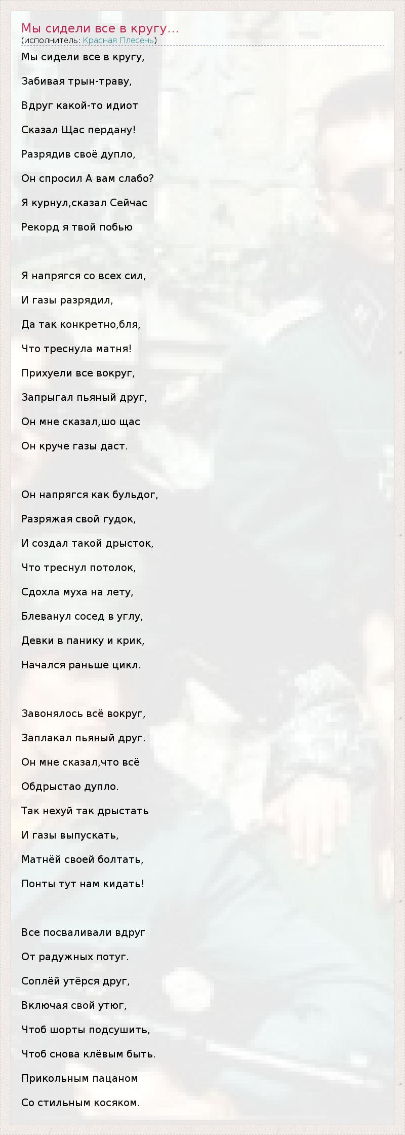 ГлавнаяИсполнителиКрасная ПлесеньМы сидели все в кругу...
