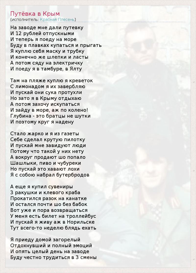 А как ты думаешь, о чем песня "Путёвка в Крым" ?