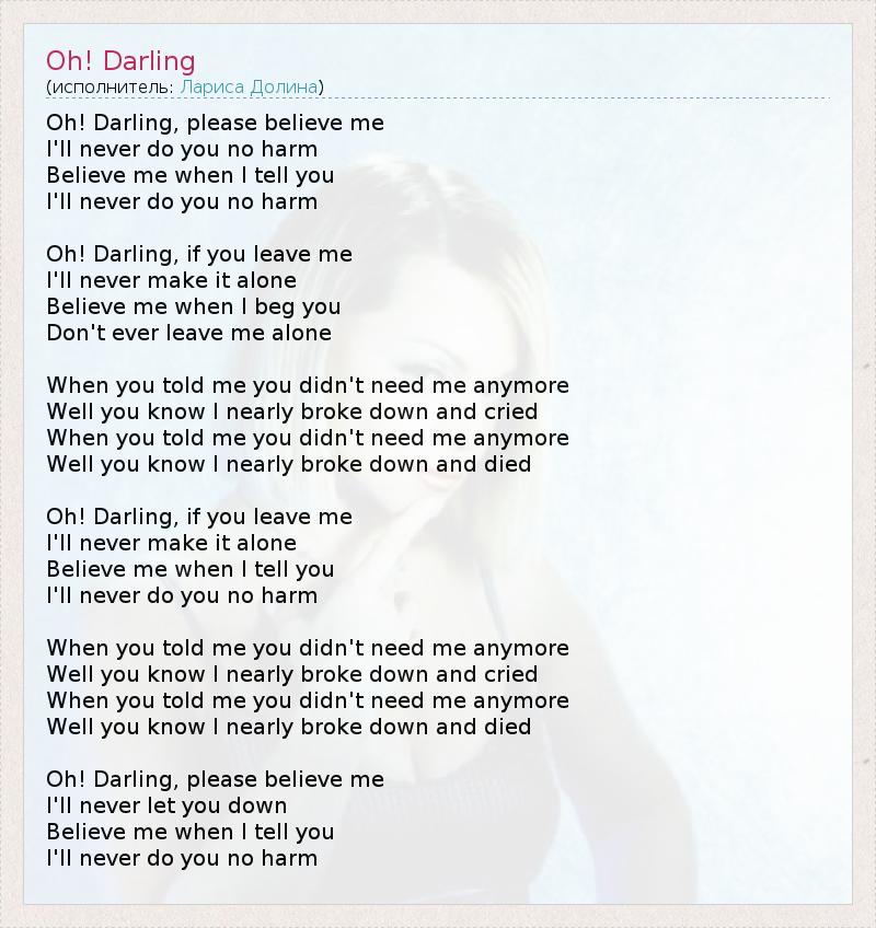 А как ты думаешь, о чем песня "Oh! Darling" ?
