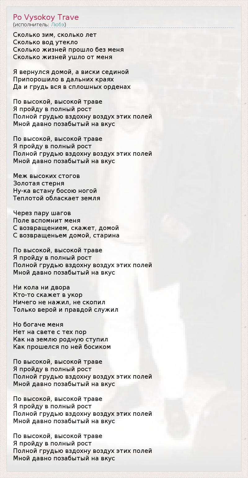 А как ты думаешь, о чем песня "Po Vysokoy Trave" ?