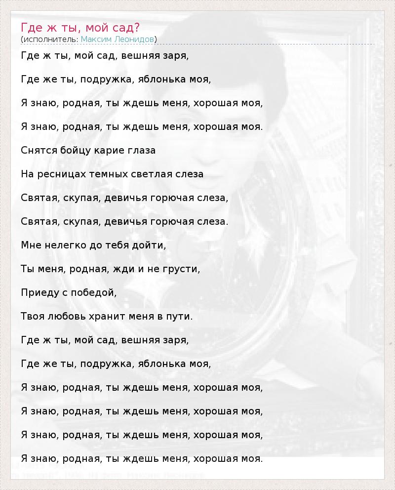 А как ты думаешь, о чем песня "Где ж ты, мой сад?" ?