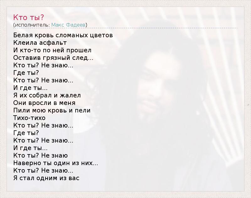 А как ты думаешь, о чем песня "Кто ты?" ?