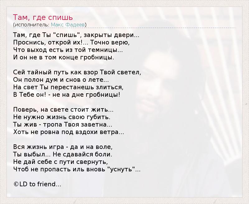 А как ты думаешь, о чем песня "Там, где спишь" ?