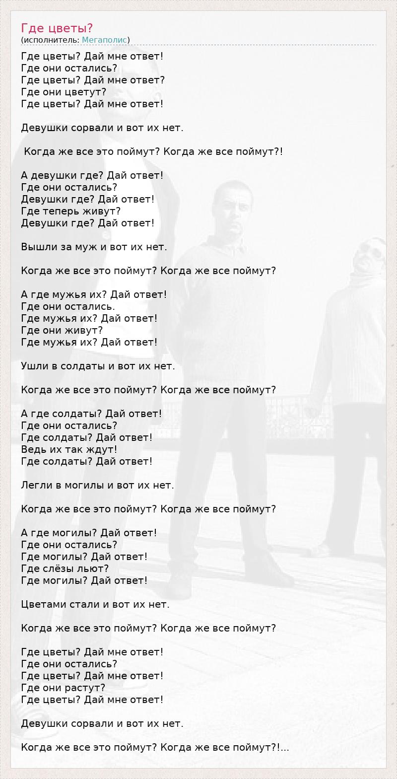 А как ты думаешь, о чем песня "Где цветы?" ?