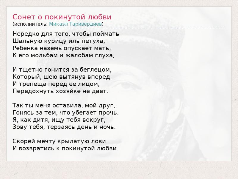 А как ты думаешь, о чем песня "Сонет о покинутой любви" ?