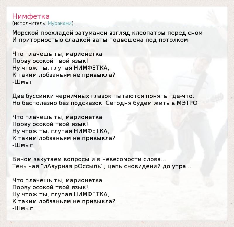 А как ты думаешь, о чем песня "Нимфетка" ?