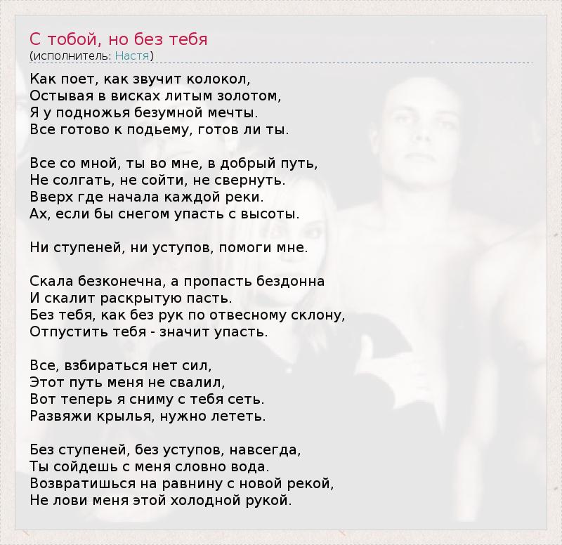 А как ты думаешь, о чем песня "С тобой, но без тебя" ?