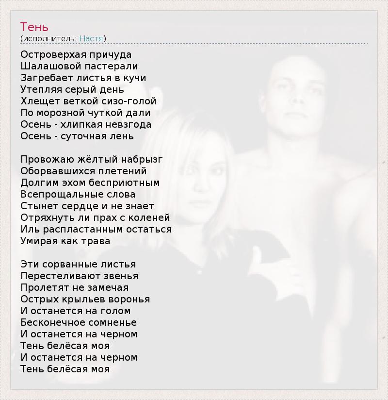 А как ты думаешь, о чем песня "Тень" ?