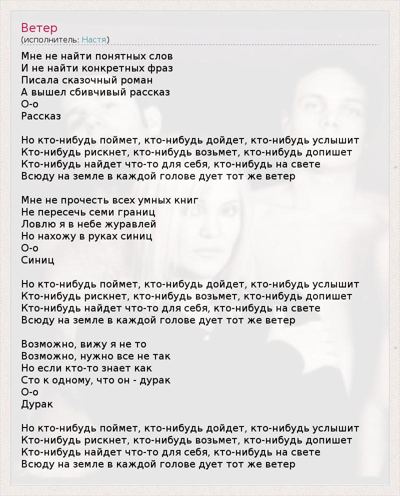 А как ты думаешь, о чем песня "Ветер" ?