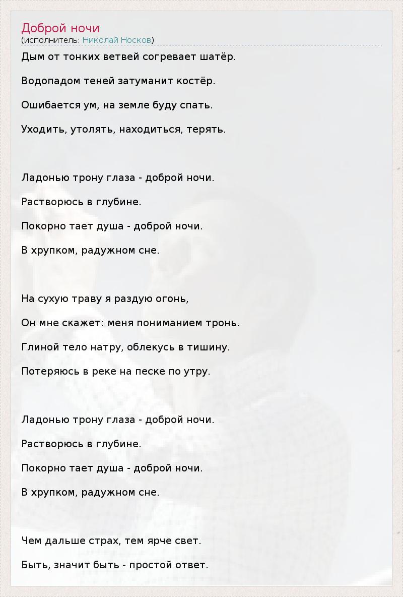 А как ты думаешь, о чем песня "Доброй ночи" ?