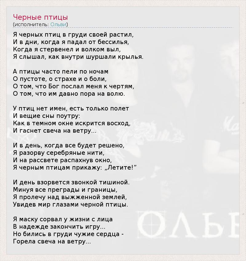 ГлавнаяИсполнителиОльвиЧерные птицы