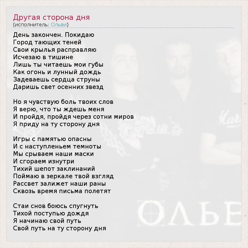 ГлавнаяИсполнителиОльвиДругая сторона дня