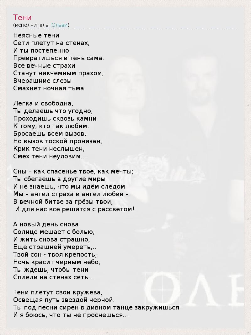 А как ты думаешь, о чем песня "Тени" ?