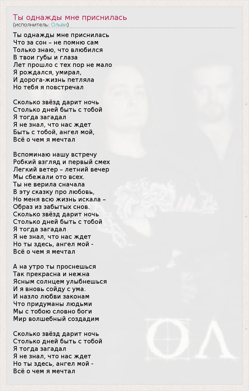 ГлавнаяИсполнителиОльвиТы однажды мне приснилась