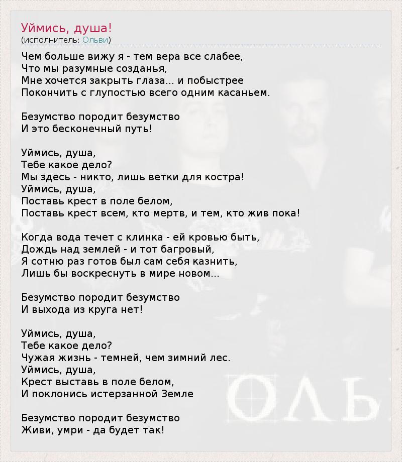 ГлавнаяИсполнителиОльвиУймись, душа!