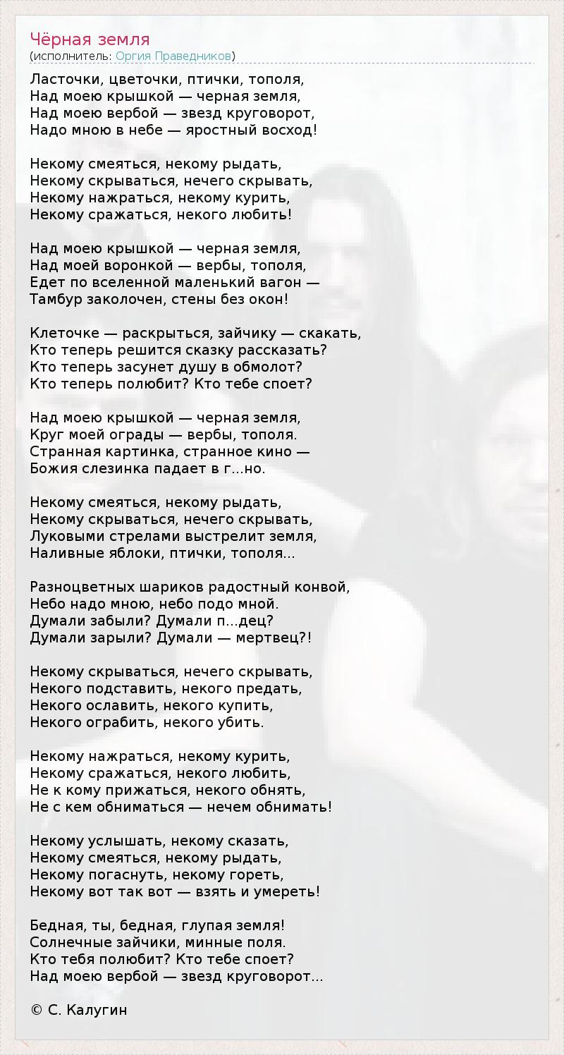 А как ты думаешь, о чем песня "Чёрная земля" ?