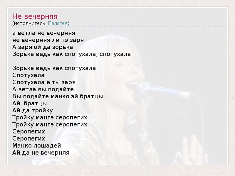 А как ты думаешь, о чем песня "Не вечерняя" ?