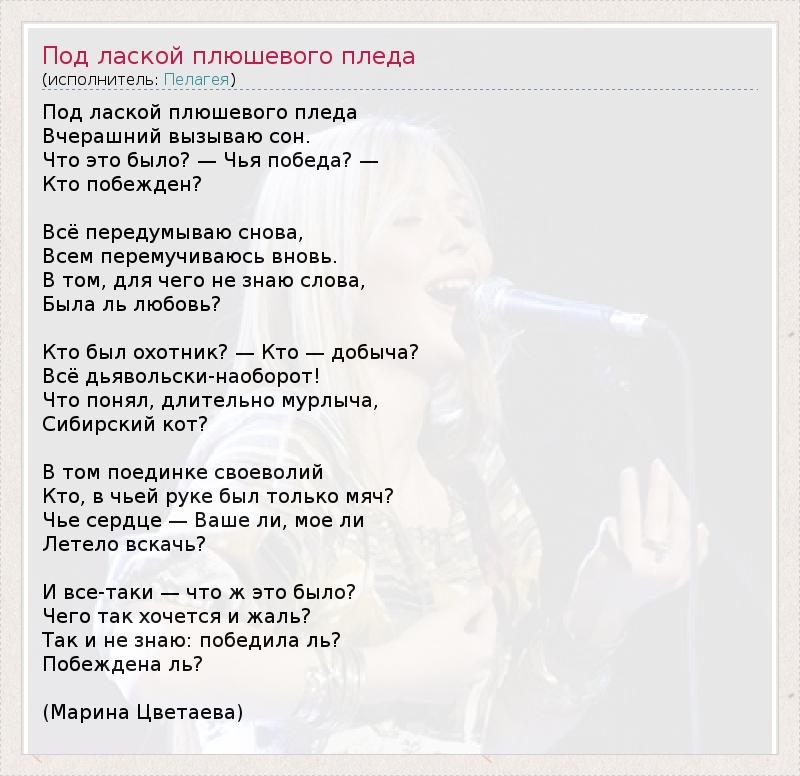 ГлавнаяИсполнителиПелагеяПод лаской плюшевого пледа