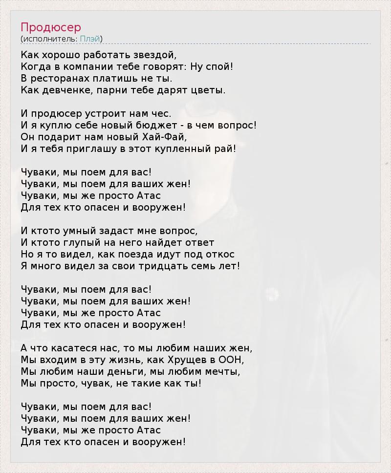 Это интересно:Группа «ПЛЭЙ» появилась в Волгодонске в 2002 году. Тогда два энтузиаста, Кирилл Киселев и Коляша (Давыдов Николай) загорелись идеей спасти мир посредством красоты своей музыки.Состав постоянно менялся, но песни сочинялись, струны рвались, и результатом этой творческой деятельности стал demo диск «Хорошая трата денег» (домашняя запись, г. Волгодонск, 2003 год), благодаря которому группа... продолжение