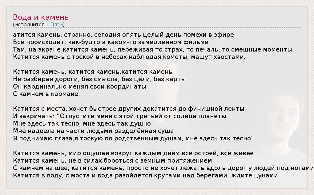 А как ты думаешь, о чем песня "Вода и камень" ?