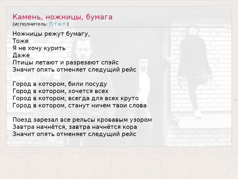 А как ты думаешь, о чем песня "Камень, ножницы, бумага" ?