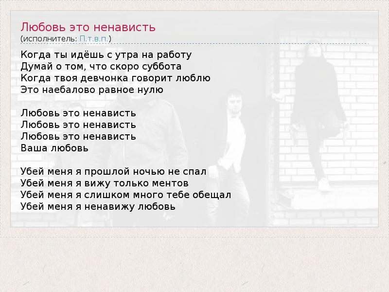 ГлавнаяИсполнителиП.т.в.п.Любовь это ненависть