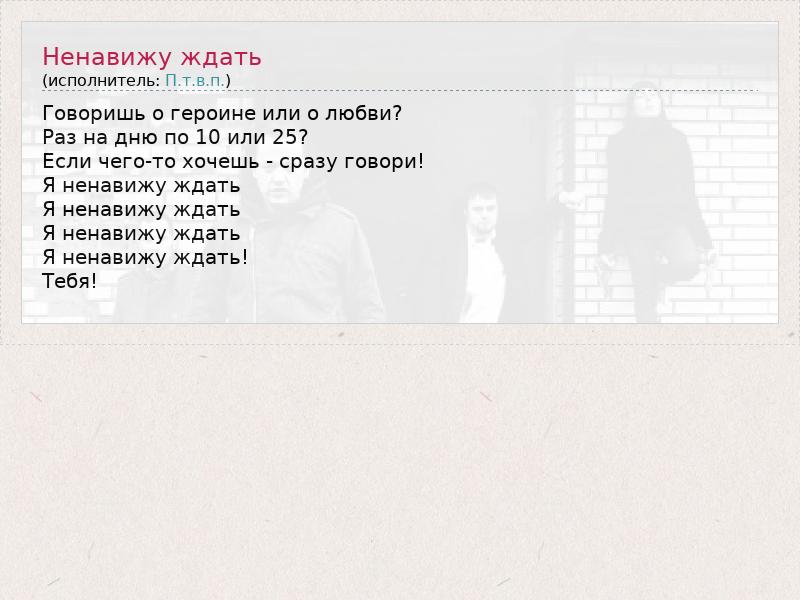 ГлавнаяИсполнителиП.т.в.п.Ненавижу ждать