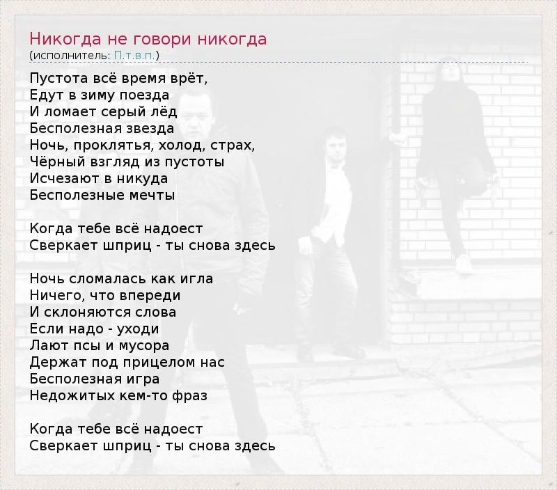 А как ты думаешь, о чем песня "Никогда не говори никогда" ?
