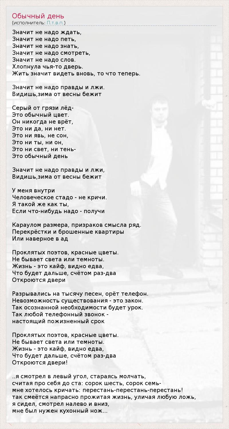 ГлавнаяИсполнителиП.т.в.п.Обычный день