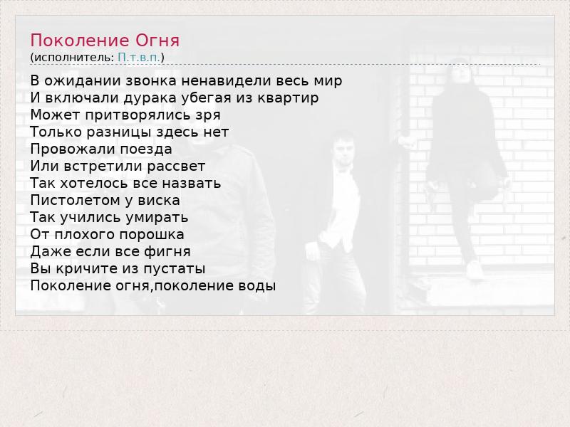 ГлавнаяИсполнителиП.т.в.п.Поколение Огня