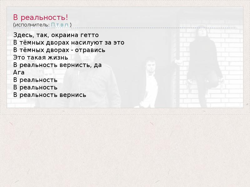 ГлавнаяИсполнителиП.т.в.п.В реальность!