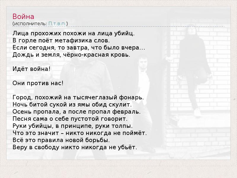 Это интересно:После́дние Та́нки В Пари́же (П. Т. В. П.) — панк-группа из Выборга, Ленинградская область, Россия. Коллектив был основан в 1996 году Алексеем Никоновым, чаще упоминаемым как Лёха Никонов.Первоначально группа была названа «Последнее танго в Париже» по одноимённому фильму (режиссёр: Бернардо Бертолуччи), позже Эдуард «Рэдт» Старков, записывая группу на выступление в клубе «TaMtAm», предложил... продолжение