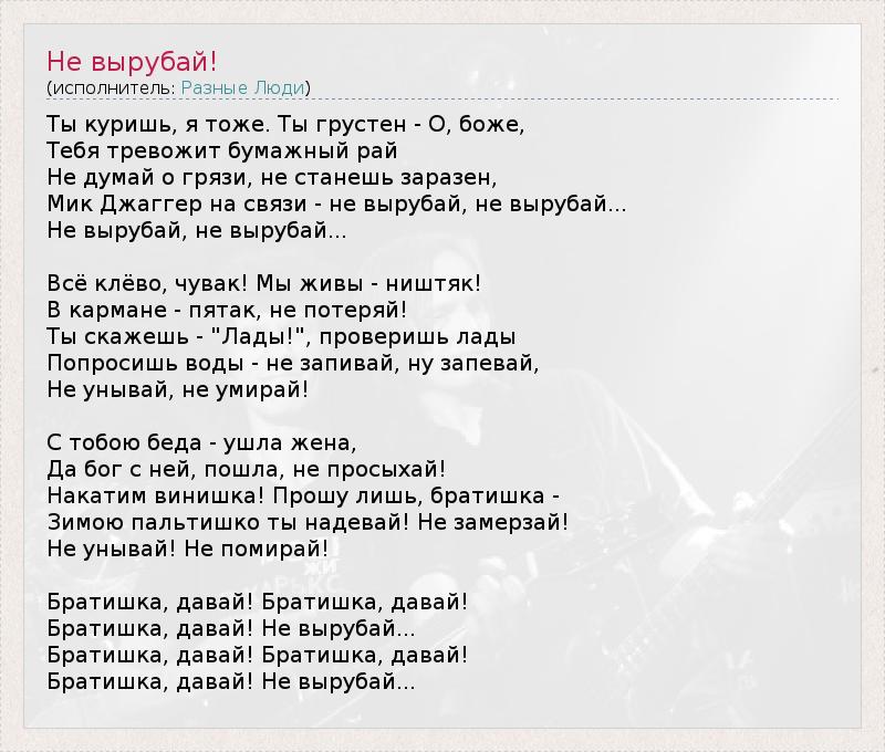 А как ты думаешь, о чем песня "Не вырубай!" ?