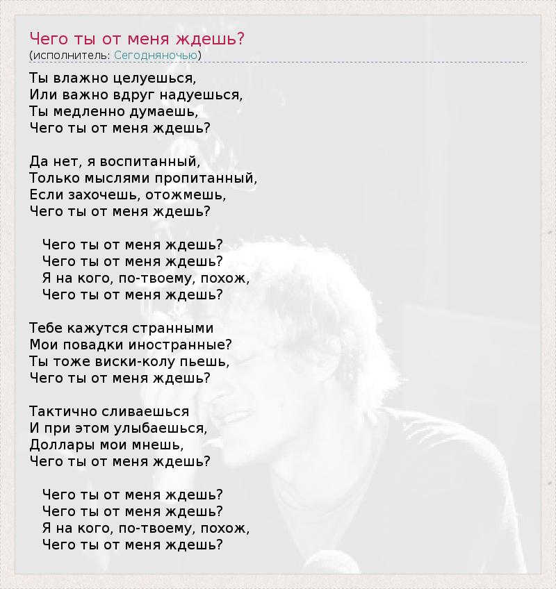 ГлавнаяИсполнителиСегодняночьюЧего ты от меня ждешь?