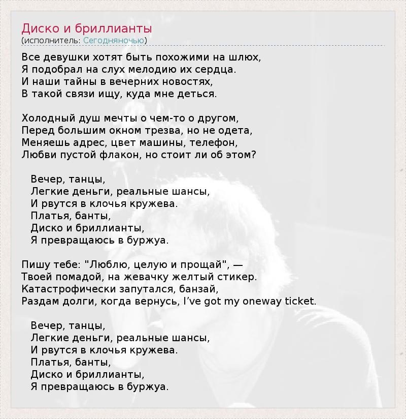 А как ты думаешь, о чем песня "Диско и бриллианты" ?