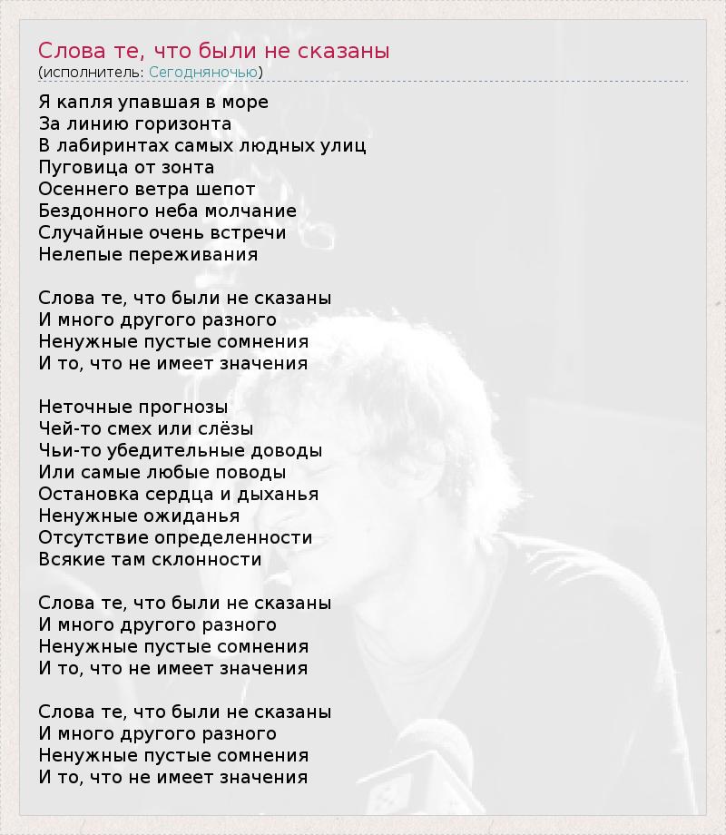 ГлавнаяИсполнителиСегодняночьюСлова те, что были не сказаны