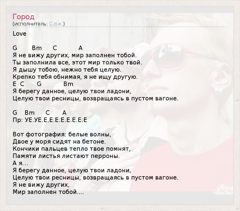 Крепко тебя обнимая, я не ищу другую.
