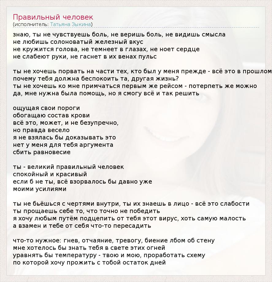 ГлавнаяИсполнителиТатьяна ЗыкинаПравильный человек