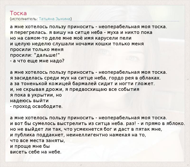 а мне хотелось пользу приносить - неоперабельная моя тоска.