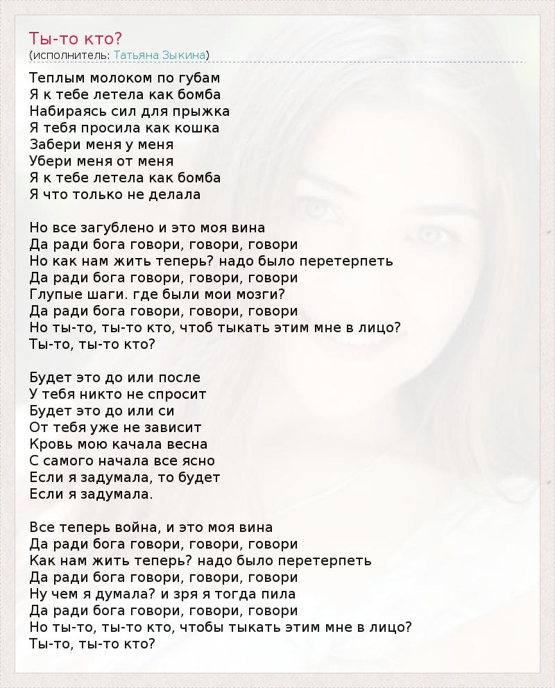 А как ты думаешь, о чем песня "Ты-то кто?" ?
